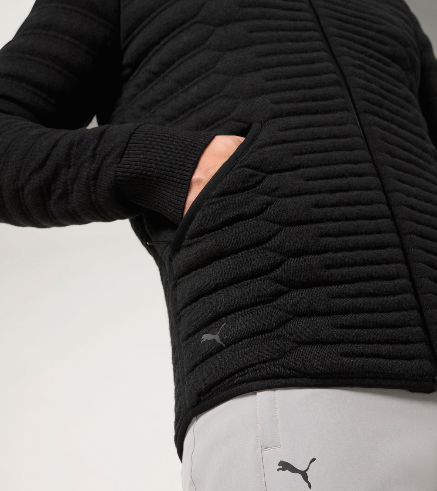 Der EvoKNIT® Hoodie ist die Fusion von funktionalem Hoodie und exklusivem Statement-Design. Dank Wollmix-Material ist er besonders wärmend und der perfekte Begleiter für den Alltag. Dass Porsche in jeder Faser steckt, zeigen u. a. die von der Sitzmittelbahn des 911 Turbo inspirierte Struktur, der einzigartige, technische 3D-Look sowie die gebrandeten Zipperpuller. Die Kängurutasche und der geschwungene Saum setzen optische Akzente.