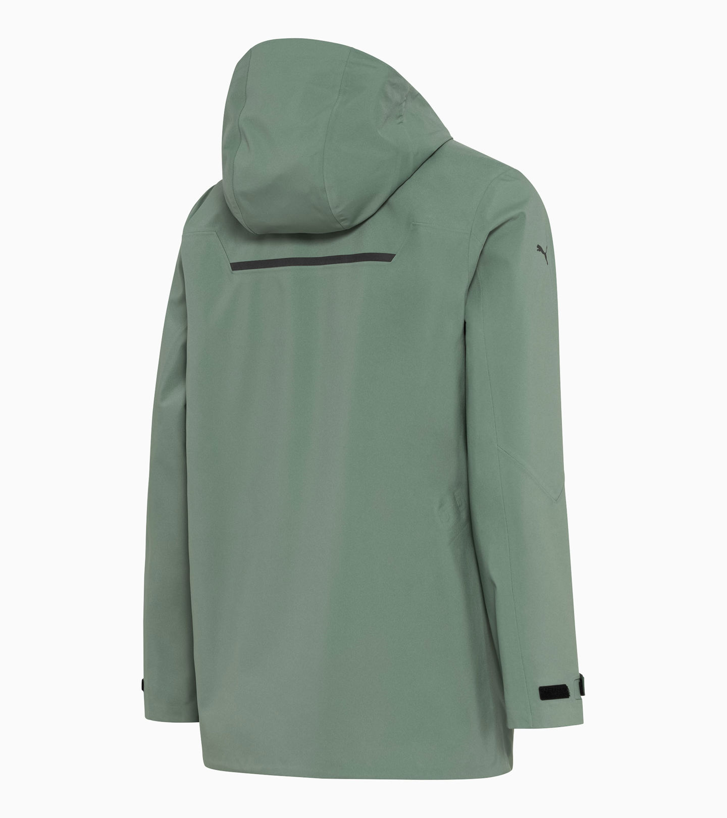 Ein echtes Masterpiece: Die funktionale und komplett verschweißte Jacke mit getapten Innennähten und 20.000 mm Wassersäule, dreilagigem Sympatex®-Stoff aus 100 % recyceltem Polyester und stormCELL®-Technologie. In zwei aufgesetzten Taschen mit magnetischen Druckknöpfen am Saum und zwei Brusttaschen mit wasserdichten Reißverschlüssen finden alle wichtigen Gegenstände einen sicheren Platz. Die Jacke verfügt zudem über Straps, inspiriert von Autogurten, die es möglich machen, diese als Rucksack zu tragen. Für besonderen Tragekomfort sorgen die verstellbare Kapuze mit Kordelzug und der Lasercut-Adjuster an den Armelbündchen. Die reflektierenden Taping-Details und das aufgedruckte Zitat von F. A. Porsche auf der Innenseite der Jacke runden das stilvolle Design ab und machen sie zu einem wahren Must-have für alle Outdoor- und Porsche-Fans.